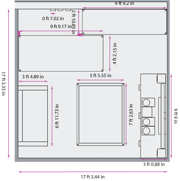 Optimize a compact living area to support diverse activities, including sleeping, working, entertainment, and relaxation. Seamlessly integrate multi-functional furniture that maximizes space efficiency without compromising comfort.