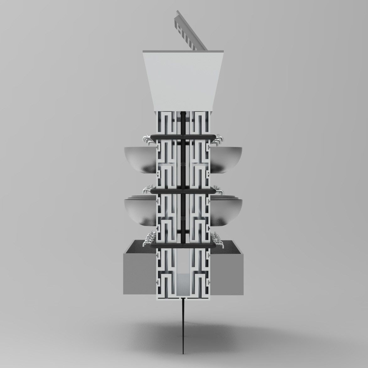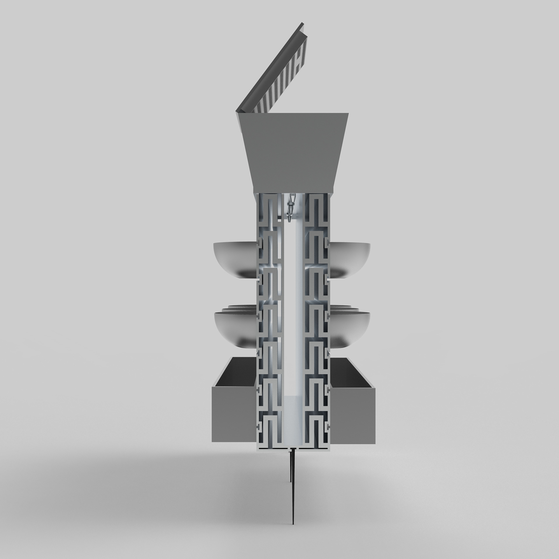 VERTIFLO focuses on addressing drought through better water management. Developed a rainwater capture and vertical irrigation system that collects rainwater when it is available and redistributes it to plants over time. By combining storage and irrigation into one structure, the system helps gardens and small agricultural spaces remain productive even during dry periods.